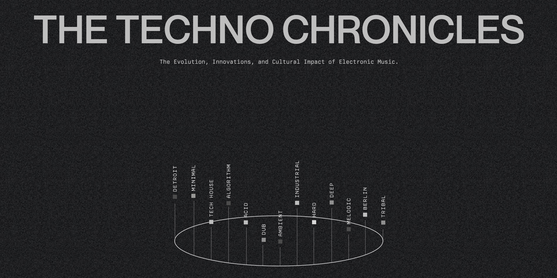 The challenge is to capture the essence of techno music while narrating its history, combining both into a cohesive design. The goal is to evoke the techno vibe subtly, without making it feel overdone, balancing the rhythmic, raw energy of techno with historical storytelling in a way that feels natural and immersive.